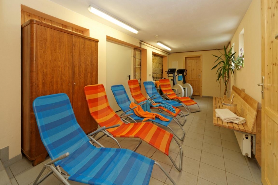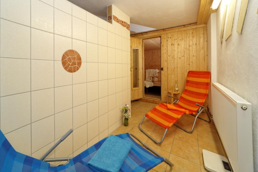 Im Kellergeschoss befindet sich neben den Heizungsräumen auch eine Sauna, welche durch bis zu 12 Personen genutzt werden kann.